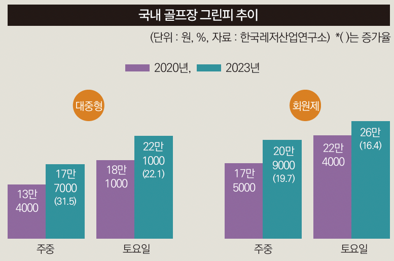 대중제 골프장도 만만치 않습니다. 주중 평균 12만8천원, 주말은 17만7천원 수준입니다. 여기에 캐디피, 카트비, 식사비를 더하면 주중 25만원, 주말 30만원이 필요합니다.